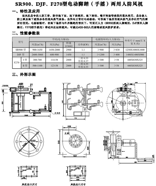 2、電動腳踏(手搖)兩用人防風(fēng)機
