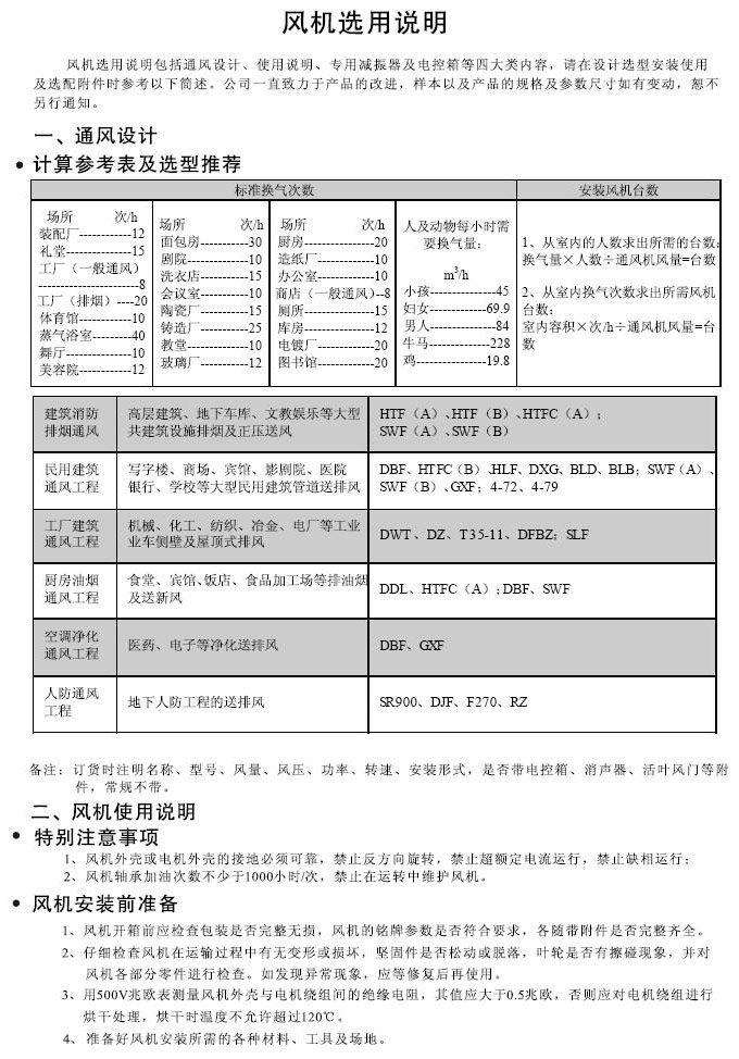 風(fēng)機(jī)選用說明