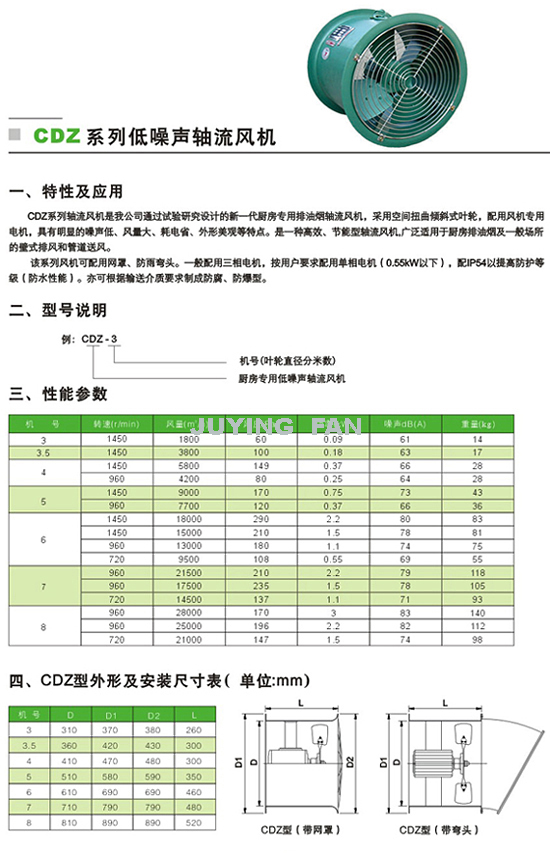 1、CDZ系列低噪聲軸流風(fēng)機(jī)
