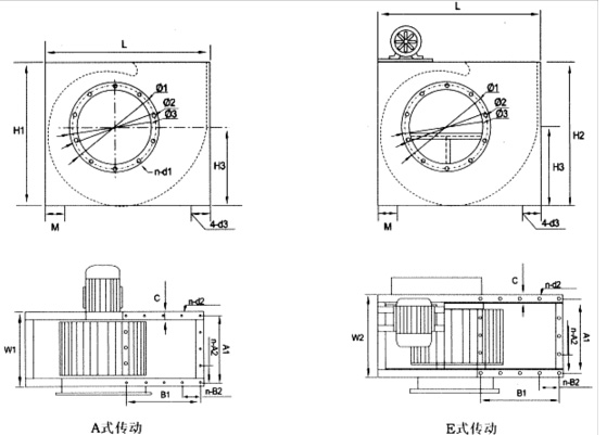 CDF-I 型風(fēng)機(jī)采用A式直聯(lián)和E式皮帶傳動(dòng)兩種結(jié)構(gòu)形式,前傾多翼式離心葉輪。配用防爆電機(jī)和鋁(不銹鋼)材質(zhì)葉輪,可制成防爆型。具有風(fēng)量大、噪聲低、結(jié)構(gòu)緊湊、安裝方便等優(yōu)點(diǎn),適用于單位食堂、飲食店、賓館酒樓等廚房排油煙,及廠礦企業(yè)、民用建筑等場合的送排風(fēng)。