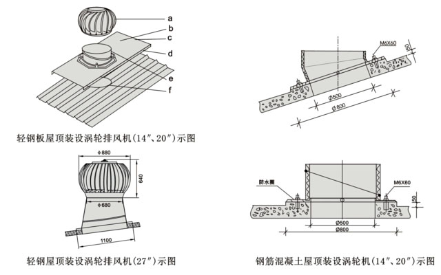 2、DWT-Ⅳ(無電機)屋頂渦輪排風(fēng)機屋面安裝示圖說明