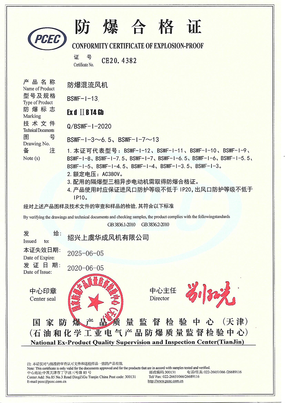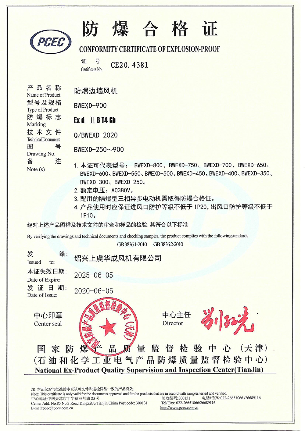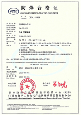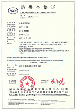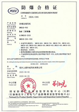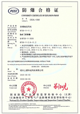 邊墻風(fēng)機(jī)防爆證書(shū)