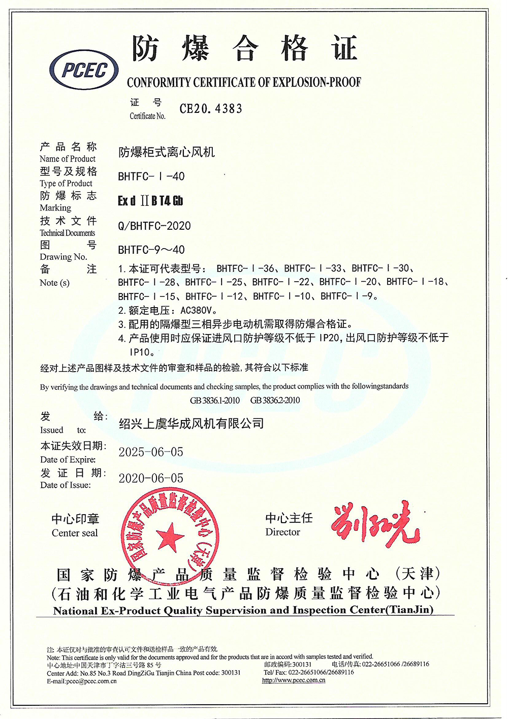 柜式離心風(fēng)機(jī)防爆證書(shū)