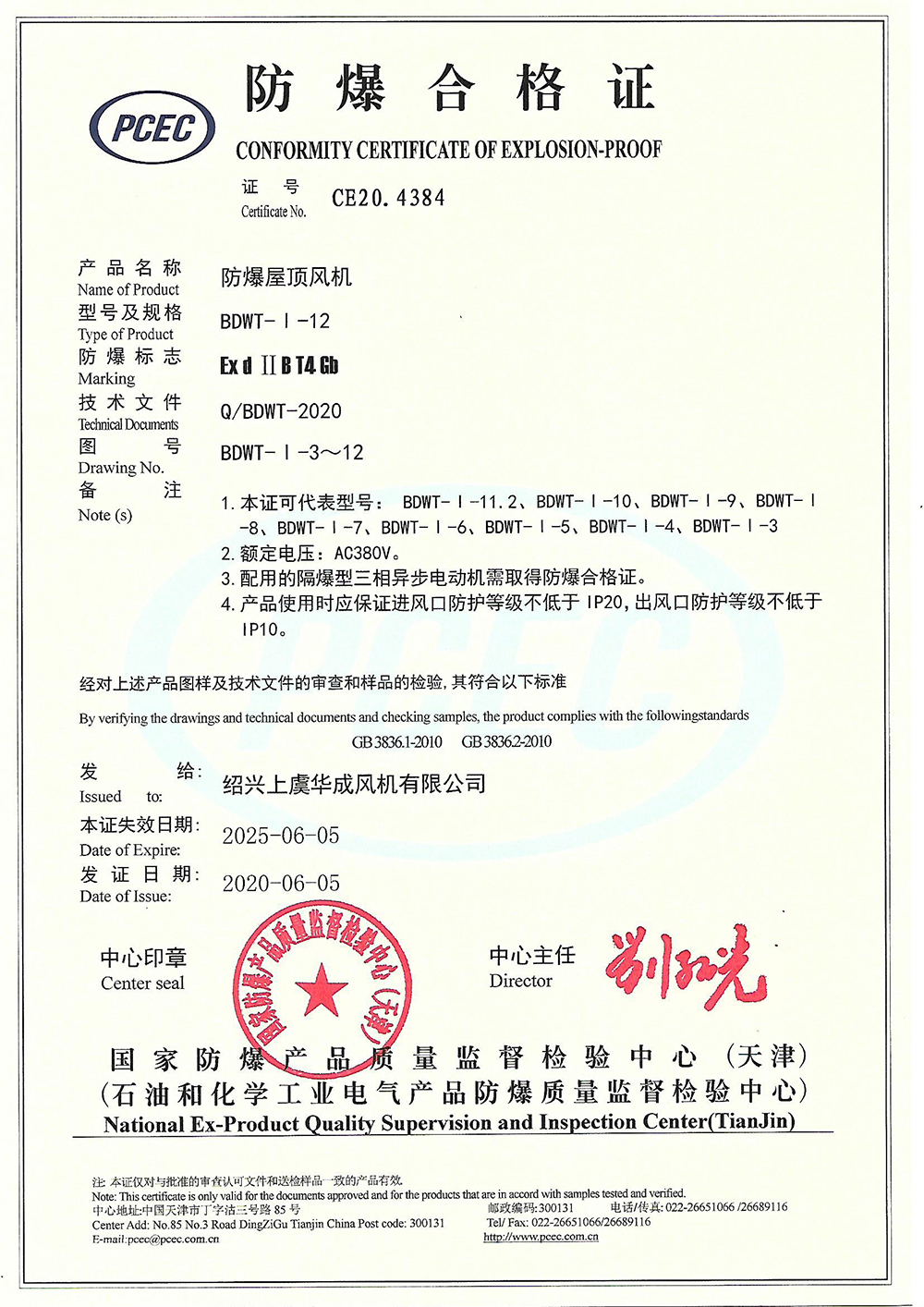 屋頂風(fēng)機(jī)防爆證書(shū)