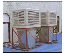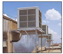 用循環(huán)水泵不間斷地把接水盤內(nèi)的水抽出,并通過布水系統(tǒng)均勻地噴淋在蒸發(fā)過濾層上,使室外熱空氣通過蒸發(fā)換熱器(蒸發(fā)濕簾)內(nèi)與水分進行熱量交換,通過水蒸發(fā)而達到降溫,清涼、潔凈的空氣則由低噪音風(fēng)機加壓送入室內(nèi),其可以達到降溫4-10度的效果。 |